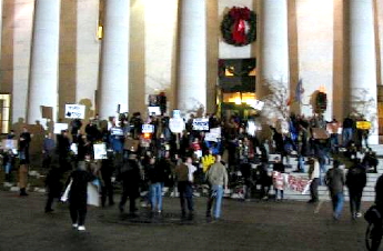 took over the steps and entrance to the State’s giant white-columned