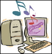 a child, sitting at a computer. She plays a tune on her