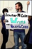 Demonstration in Des Moines highlights inadequate health care proposed by presidential candidateArea voters united in Iowa for Health Care raised concerns about Senator John McCain's proposed health care plan Tuesday morning at the presidential candidate's economic roundtable discussion in Des Moines. Carrying signs that read “McCain to Deregulate Health Care like Banking,” “Sen. McCain: Wrong on Health Care,” “Health Care is a Right, Not a Privilege,” and “Sen. McCain, Your Health Care Plan Makes Me Sick,” the group specifically highlighted shortfalls in health care coverage for individuals with pre-existing health care conditions proposed by McCain.
