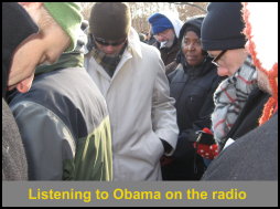 The other three of us with blue tickets ended up watching from the Hubert Humphrey Building. It was hard to hear through the loud speakers and we heard that the jumbotrons were slightly behind the live sound, so a band of twenty or so huddled around a radio and listened to Obama’s speech.