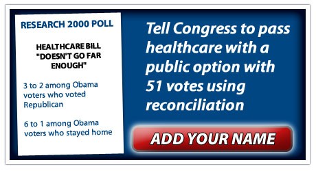 The message is clear, there is only one way out of this mess if Democrats want to win in 2010. It's time to pass healthcare with 51 votes in the Senate using the budget reconciliation process. And it must include the most popular piece of bold reform: the choice of a public option.