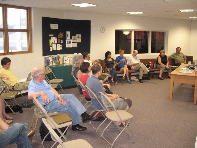 About twenty people were in the audience tonight at the First Mennonite Church in Iowa City for the live radio broadcast. The program's format was a mix of guest experts and audience and caller participation.