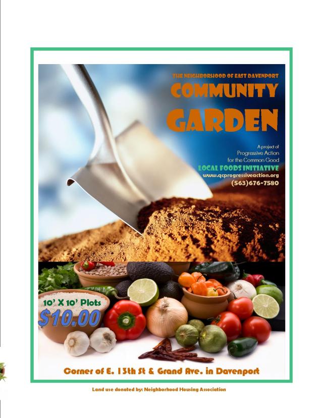 Greetings Iowans! I would like to share with you all the ongoing developments of our first Community Garden Project of Progressive Action for the Common Good. This project is part of our PACG Local Foods Initiative. In addition to the garden project, we are working on Farm to Fork, establishing a local food coop and a seed saving library.