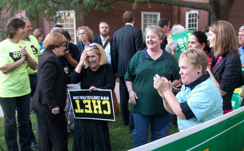 Culver: We're the renewable energy capital of the U.S.; our future is bright because of green power jobs; I've managed this state during these hard times… Big applause for Chet.. the condition of the state is strong; we are leading us out of this recession; we've had a lot of success bringing jobs…I've delivered on promises I've made; I promised to raise minimum wage and we did; little children have health care that didn't 4 years ago; we promised to expand pre-school and that has happened; Terry has broken his promises to Iowans; raised taxes after saying he wouldn't; he broke his promise on the budget, cooked the books for 4 years; broke his promise in terms of jobs creation… I want to keep moving Iowa forward; I want to fight for our veterans, our seniors, women's rights and civil rights; we don't want to go back to the days of Terry Branstad.
