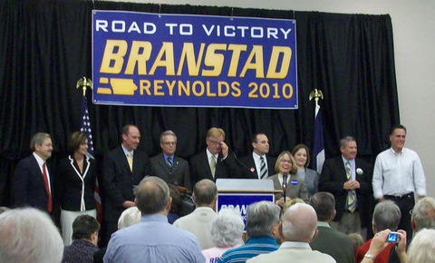 Progressive politics takes us to some strange places and today it took me to the Hotel at Kirkwood on the southwest side of Cedar Rapids, Iowa. There, the Branstad-Reynolds road to victory tour lined up the entire Republican statewide slate on a stage along with Mitt Romney and Mariannette Miller Meeks. For 10:00 o'clock on a Tuesday morning, there was a reasonable crowd, maybe 125 people with the candidates and press. It was very scary and Halloween is not even here yet. What was scary was their ideas, not their presence, even if they were lined up on the stage like a strange bunch of wax figures in a row.