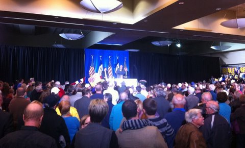 Vice President Joe Biden spoke to a crowd estimated at 550 people at the Grand River Center in Dubuque, Iowa. One picture is worth a thousand words.