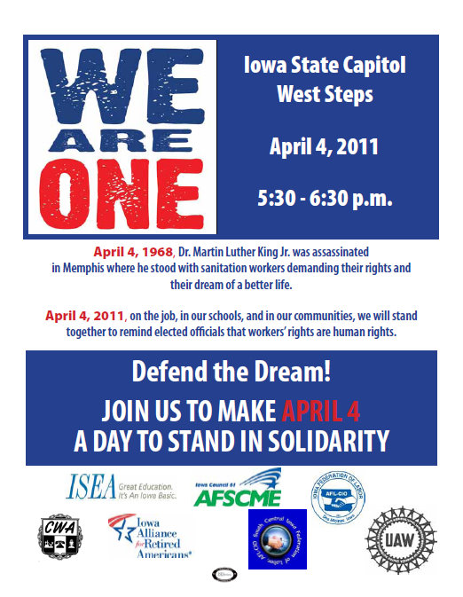 WE ARE ONE RALLY IN DES MOINES April 4, 2011