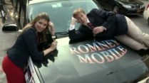 As I drove in I saw a handful of protesters. Figuring if I could find a parking spot, I’d go talk with them. When I did find a parking spot, it was right near the move-on.org “Team RomneyMobile” – a Cadillac Escalade covered with corporate logos and a stuffed dog tied on top. I spoke briefly with the “Team”, thanking them for their work. They will be following the Romney bus around the Midwest.