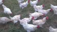 First stop was the week-old chicks still in the barn with access to heat lamps. They will be moved to the pasture in a week or so when they are old enough to with stand any cool nights. Next we were into the SUV and off to see the broilers in the pasture under movable coops. These guys were big and just a week or so from harvest. We found them in the midst of a clover filled meadow where the coops are rolled to a fresh area of grasses, wild flowers and cow pies every day. The cow pie part is all about this rotational grazing. Currently the birds are harvested at a state inspected facility near the Missouri border although the ranch is looking for a closer processor and also exploring the possibility of killing and dressing some of the birds themselves for direct sale from the farm.