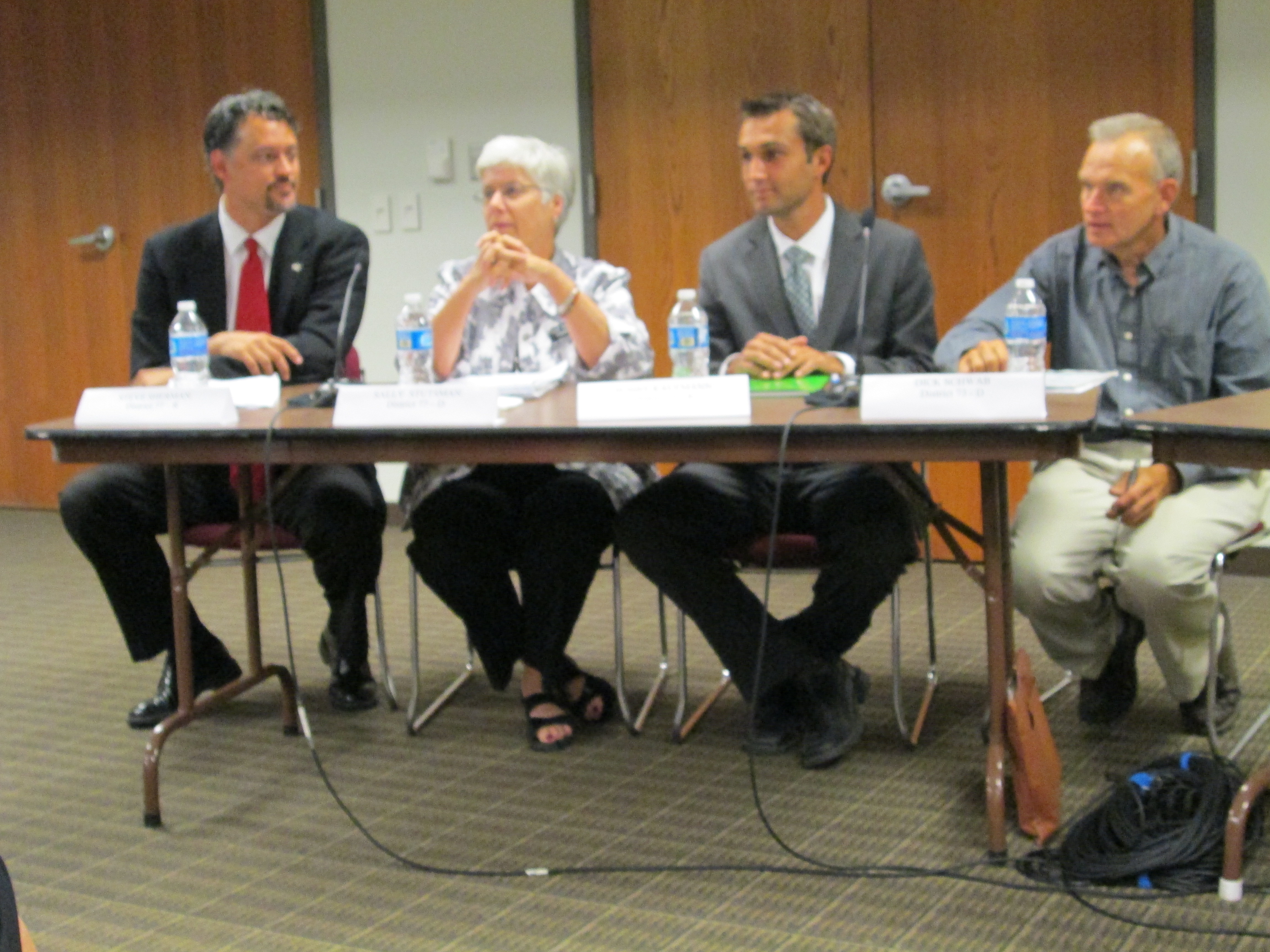 Blog for Iowa and about seventy-five people attended a candidate forum Monday with Dick Schwab and Bobby Kaufmann (HD73) and Sally Stutsman and Steve Sherman (HD77) at the Coralville Public Library.