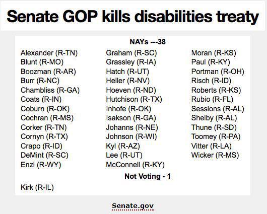 As Iowans, we are responsible for the way our representatives in congress vote. We elect them and send them to Washington to cast votes for and against policies that have an effect on people’s lives. Grassley (and his fellow Republicans– not a single Democrat) voted against the United Nations adopting global guideline recommendations for treatment of people with disabilities. ![]()