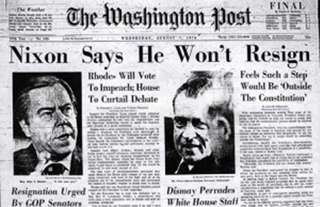 A friend was working as an intern in Washington D.C. during the summer of 1974. When the U.S. House Judiciary Committee adopted articles of impeachment on July 27, he went down to the government printing office and picked up a few copies. I remember him waving the document with glee. On Aug. 7, Nixon said he would not resign, then he did two days later on Aug. 9. President Gerald Ford pardoned Nixon on Sept. 8, 1974.