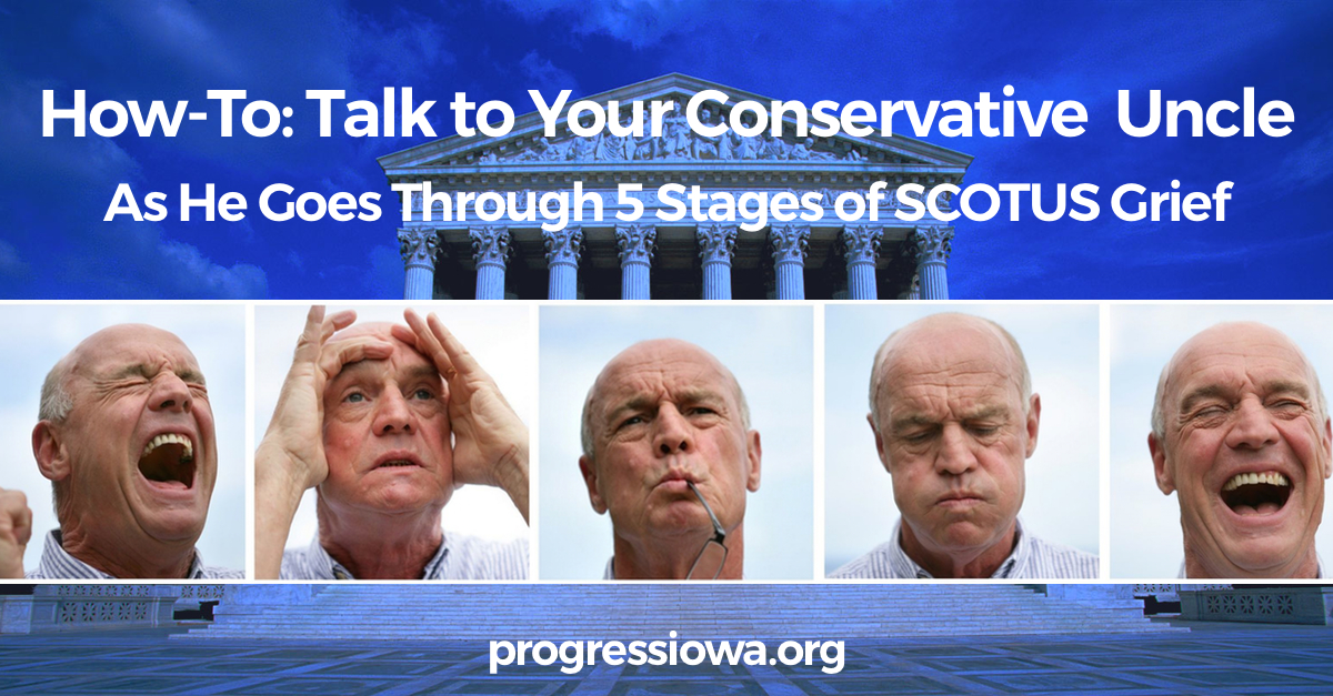 Discuss confidently with your Conservative Uncle as he goes through the 5 stages of SCOTUS Grief