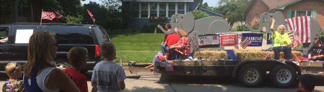 Reality bleeds over into the construct of politics. Johnny on the spot, the Republican Party of Iowa chairman condemned this use of the Confederate battle flag by his associates, although he made no mention of the improperly displayed U.S. flag on the back of the trailing pachyderm. Like it or not, the attitudes behind flag usage—stars and bars or stars and stripes—are deeply ingrained in some Iowans and ever present.