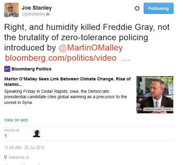 One argues that as he meets voters, he also might win them over, but Webb’s strategies and tactics are held close to the vest and there is a lot of work for him to do before Labor Day to catch up with Clinton and Sanders. What we see is the happy face of Iowa organizer Joe Stanley showing up at multiple events per day since Friday’s IDP fundraiser, regularly posting about them on social media, and zinging other candidates with social media barbs like this: