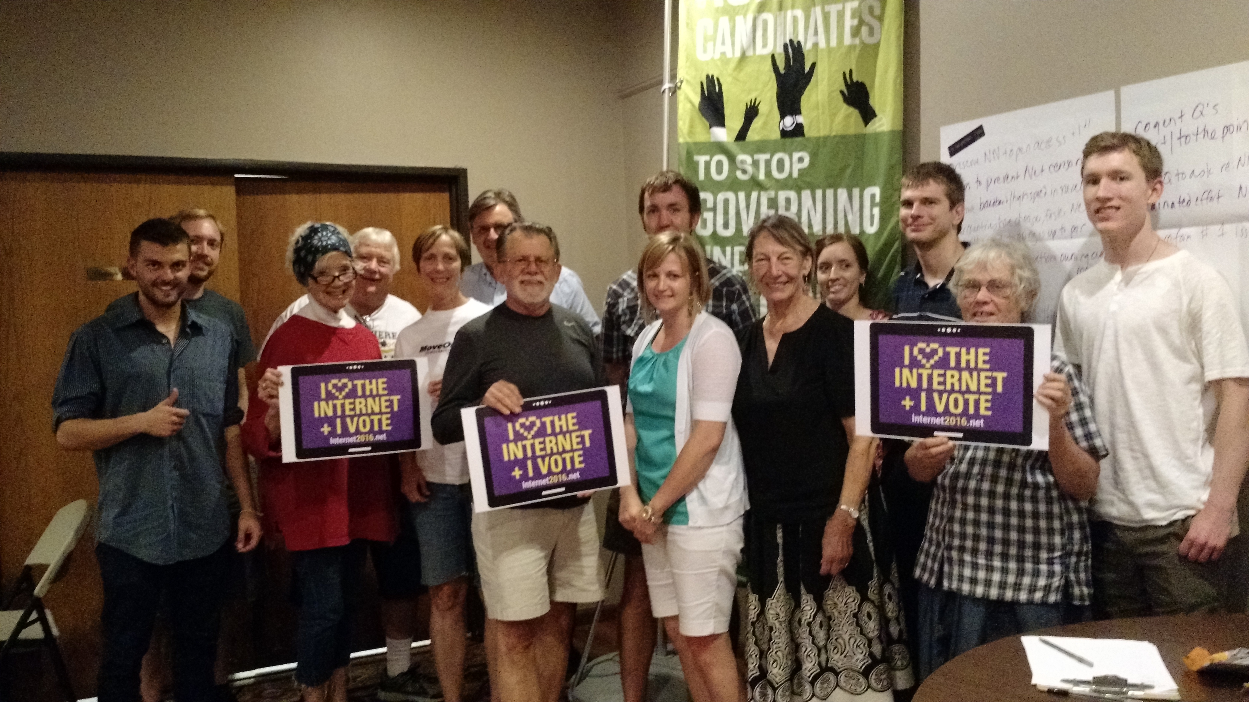 Last Thursday, Blog for Iowa attended a workshop sponsored by Freepress and American Friends Service Committee (AFSC) on the future of the internet and the 2016 presidential campaign. It was a fun evening of information-sharing and preparing to take action. The training focused on how to get your message out by asking the candidates well crafted questions; how to make sure you get called on at an event; how to talk to reporters and much more.