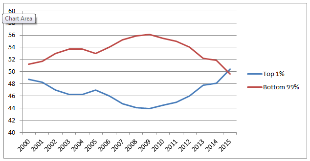 Credit Suisse’s findings are in line with Oxfam’s prediction that global wealth inequality is only becoming greater. Last January, we predicted that the richest 1 percent would capture more than half of all household wealth by 2016. It looks like our prediction was right, but that we were too conservative, since it has happened a year early. Alas, our forecast was confirmed, but it’s nothing to celebrate.