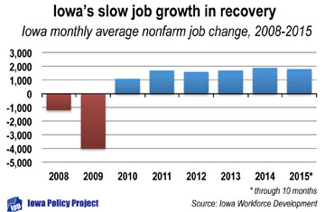 IOWA CITY, Iowa (Nov. 30, 2015) — The Iowa Policy Project today issued a statement from Executive Director Mike Owen regarding job growth claims offered by Iowa Workforce Development in a public budget hearing in Des Moines: