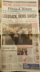 It is a long drive to the county seat so I went home after the polls closed. Like may, I wasn’t sure Dave would win. When it became clear Dave would win, toward midnight, I got dressed and drove in to join the celebration. It was a big win and Loebsack successfully defended the seat six more times.