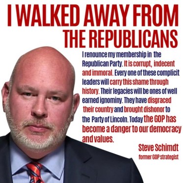 I see so much confusion out there among friends,strangers and acquaintances. People ask, why can’t our government solve these problems that the vast majority of the people agree on such as common sense gun legislation, sensible immigration reform, health care. Steve Schmidt provides a crash course in what is going on and why. Both parties are broken but Republicans are more broken according to this former Republican who left the party after it gave itself over to Donald Trump.
