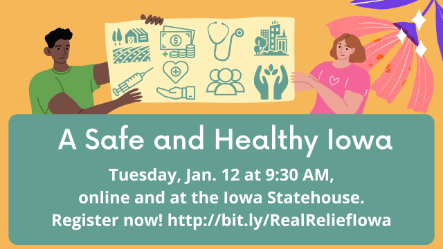 Next Tuesday, on January 12, CCI Action members are gathering online and safely at the Iowa Statehouse to demand real COVID relief that keeps every person in Iowa safe and healthy.