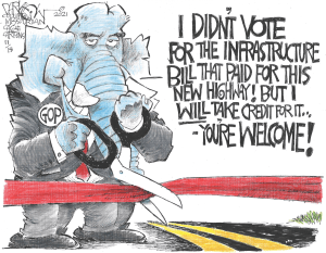 Note that among those APPROVING of Gosar’s behavior were Iowans Mariannette Miller-Meeks, Randy Feenstra and Ashley Hinson. APPROVING! You might also recognize that this tremendous trio of people who do not represent Iowans views in Congress joined together to vote AGAINST the much heralded infrastructure bill a couple of weeks ago.