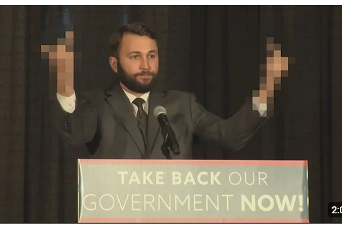 Bobby Kaufmann making an ‘obscene gesture’ to political opponents at the statehouse