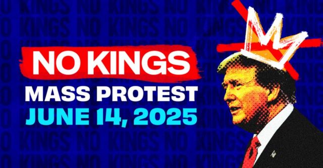 Join us, Thursday, June 12th at 7:00 pm for a No Kings strategic prep call designed specifically for No Kings event attendees! During the call, we will provide timely updates, walk through key messaging guidance, and share best practices on how to prepare for participation in the mass mobilization on June 14th.