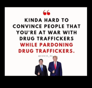 Q) bringing drugs (cocaine) into the US – something like 400 tons – while claiming he is trying to stop drugs coming in from Venezuela