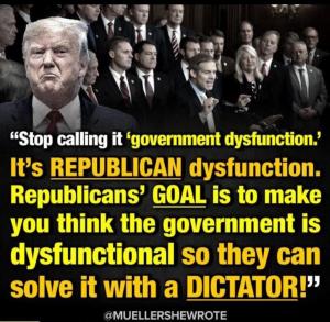 That first one by itself should scare the bejeebers out of any rational American. The second and third items are in a nutshell the plan to end our democracy – that is to grab power and consolidate it all in the presidency. Bye, bye elections.